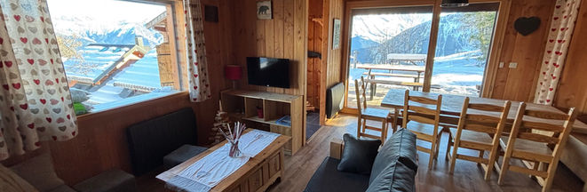 * Coin détente avec 2 canapés 3 personnes, banquette 2 personnes + poufs, table basse, télévision grand écran plat avec TNT- accès internet - WIFI offerts - Jeux de cartes/de sociétés